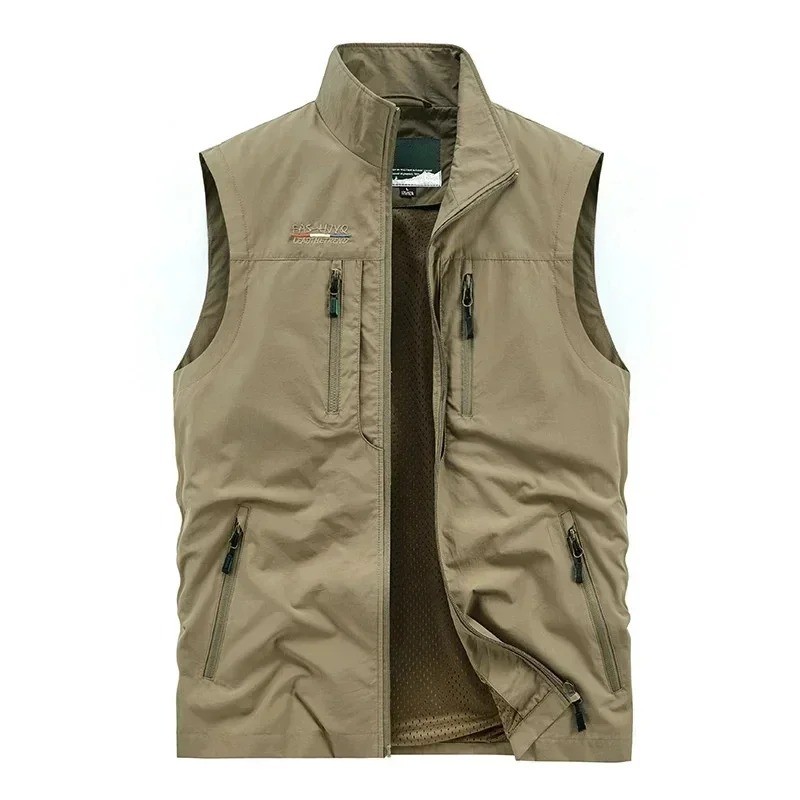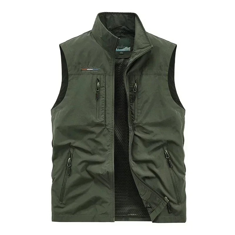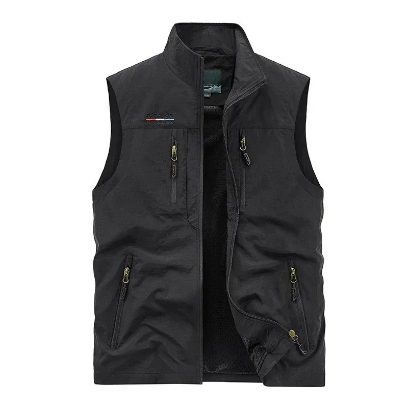 Herrevest med lynlåslommer og lynlås i polyester til vandreture, udendørs arbejde og daglig brug