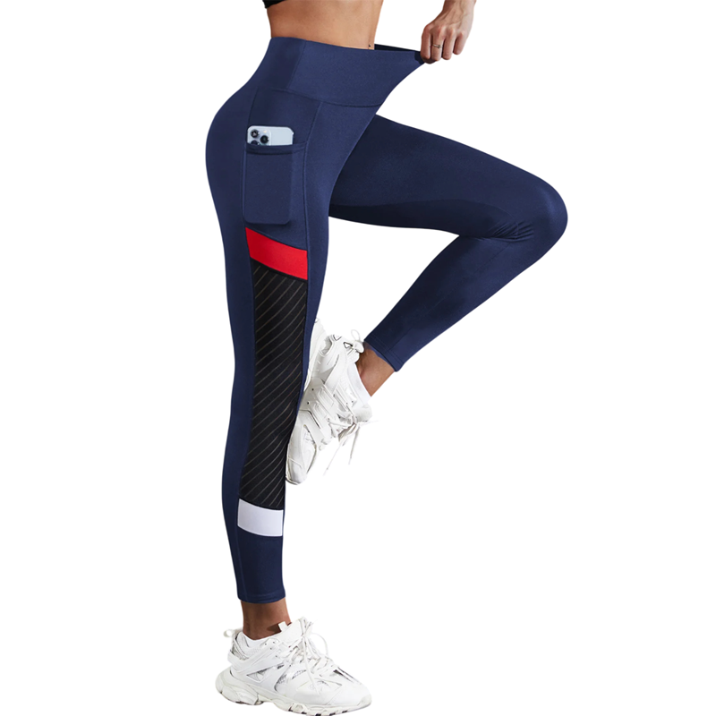 Højtaljede yogaleggings i mesh, maveformende sidelommer, sportsleggings med elastik og gennemsigtige sidepaneler