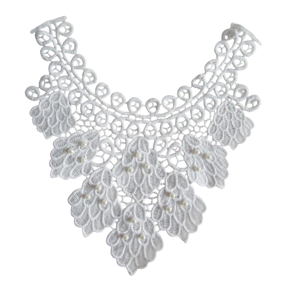 Hvid perlebroderi med blonde og perleimitations 24 x 26 cm Dekorativ applikation af mælke fiber til dekoration af kjoler, bryllupsaccessories og tøj