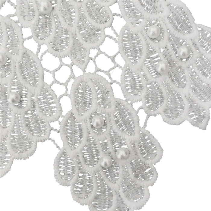 Dekorativ blondebroderi med perledetaljer er et elegant supplement velegnet til dekoration af tøj og modeaccessories. Det fine design og det dekorative mønster giver hvert projekt et luksuriøst og romantisk udseende. Dimension 24 x 26 cm giver tilstrækkelig plads til markant dekoration af kjoler, bluser, nederdele eller bryllupsaccessories.