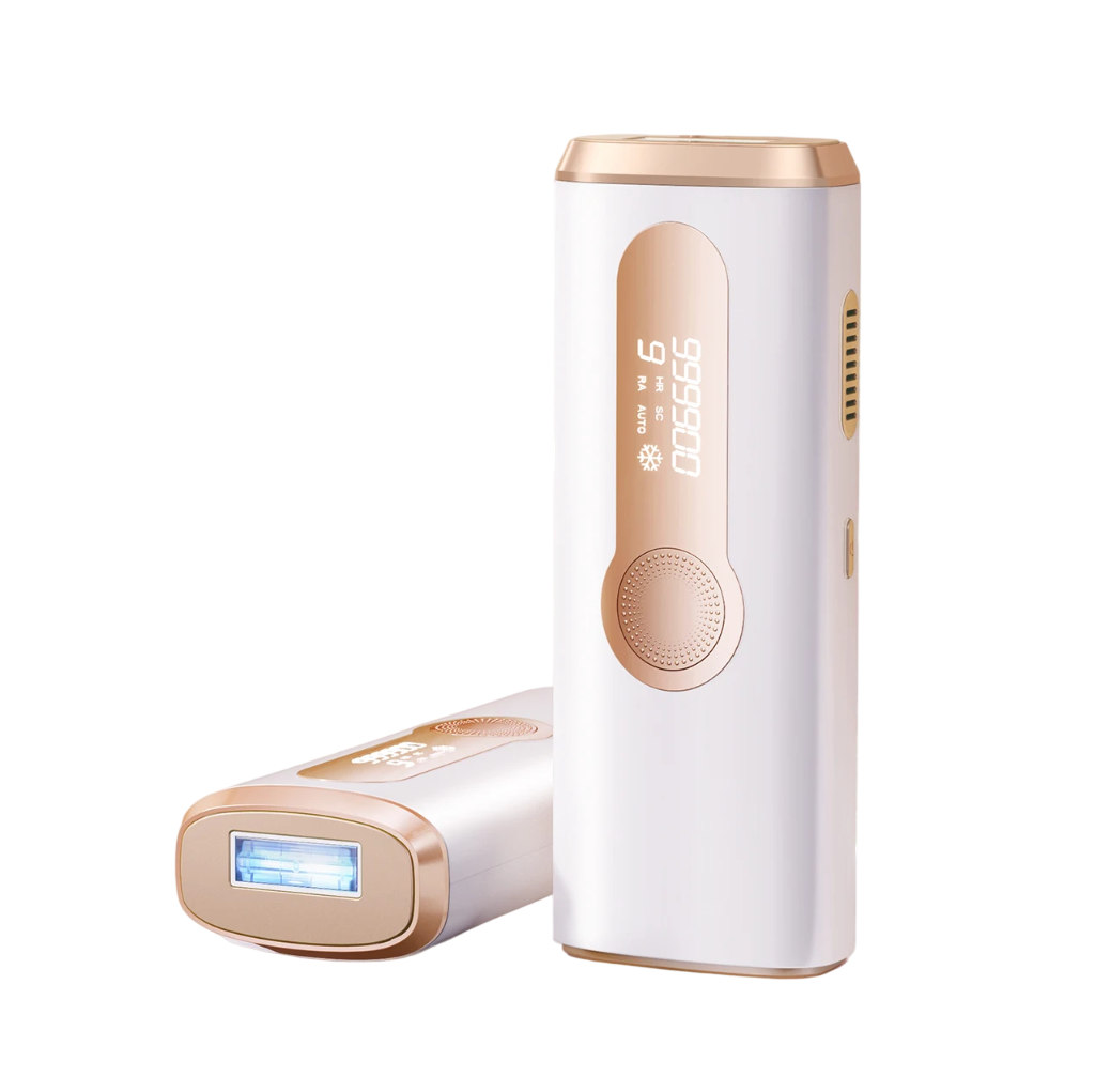 IPL laserhårfjerner 17 x 6,8 x 3,8 cm 600–1200 nm 9 intensitetsniveauer Ice cooling Automatisk og manuel tilstand Permanent hårfjerning