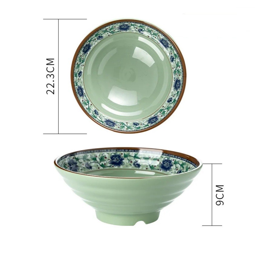 Forside Forside Hjem og husholdning Til køkkenet Borddækning Skåle Japansk porcelænsskål med grøn baggrund og blåt blomsterornament 1600 ml 22,3 x 9 cm stor skål til ramen og supper