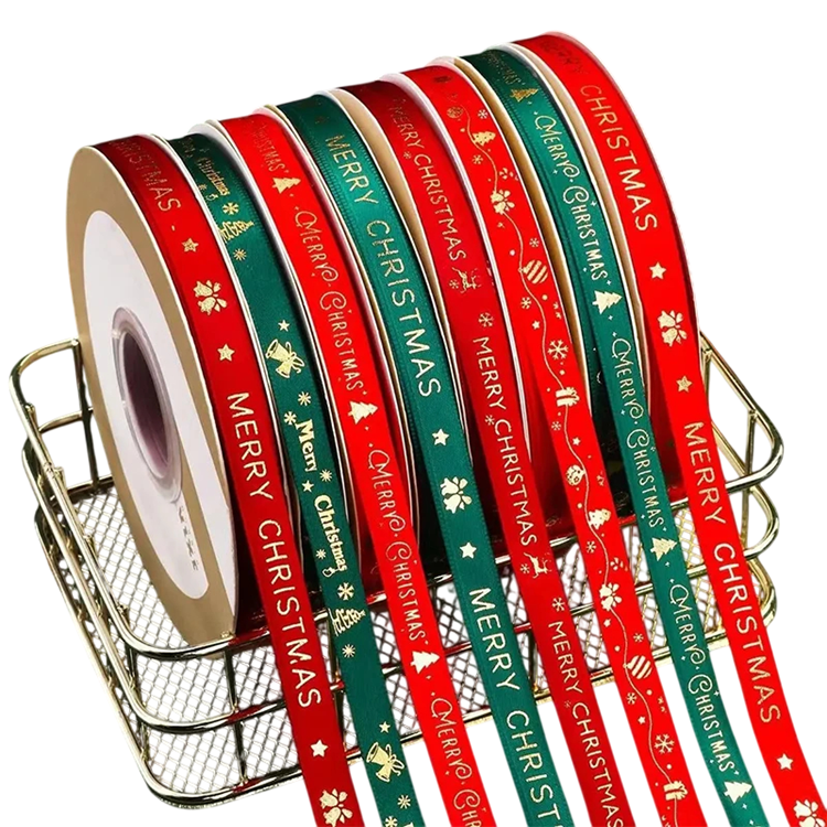 Julebånd 1 cm x 5 m Polyesterbånd med tryk til gaveindpakning, juledekoration, kager, buketter og kreativ håndlavet DIY