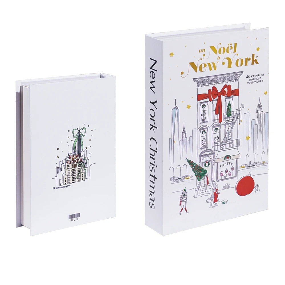 Dekorativ falsk bog New York Christmas med motiv fra byen og juleudsmykningen. Stilfuld vinterdekoration til biblioteket eller på hylden. Fuld beskrivelse