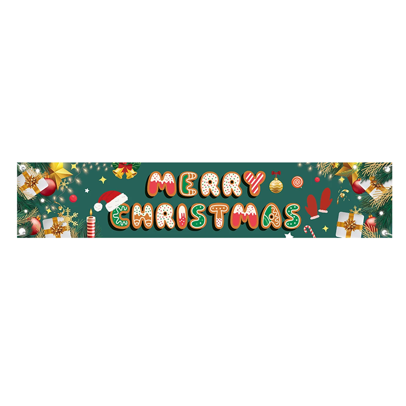 Forside Forside Hjem og husholdning Dekoration og boligtilbehør Julepynt Juleudendørs banner 200 x 40 cm Grøn stofskilt Merry Christmas Holdbar dekoration til hegn, terrasse og have