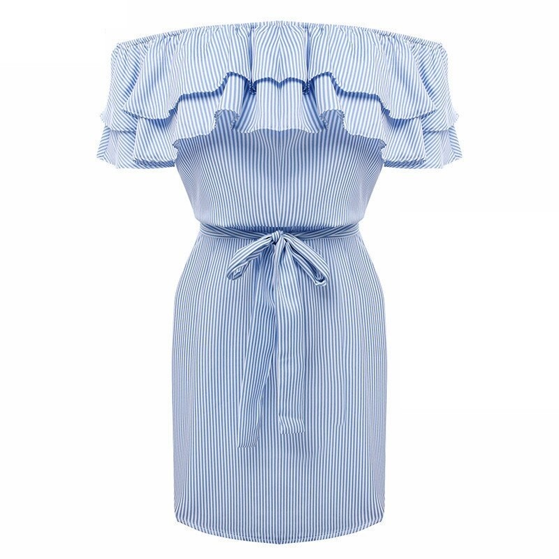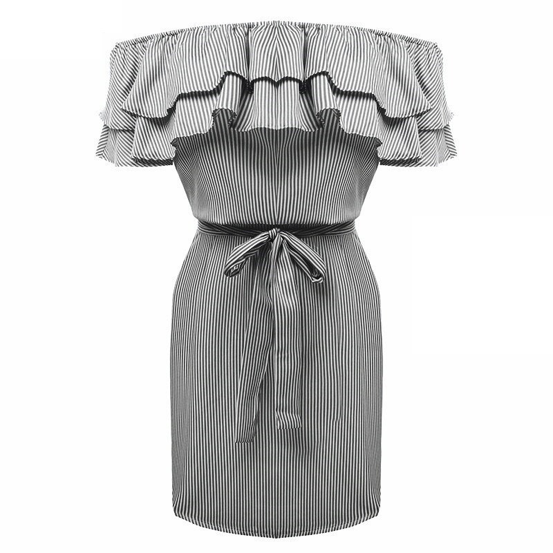 Kjole med flæser og sænkede skuldre