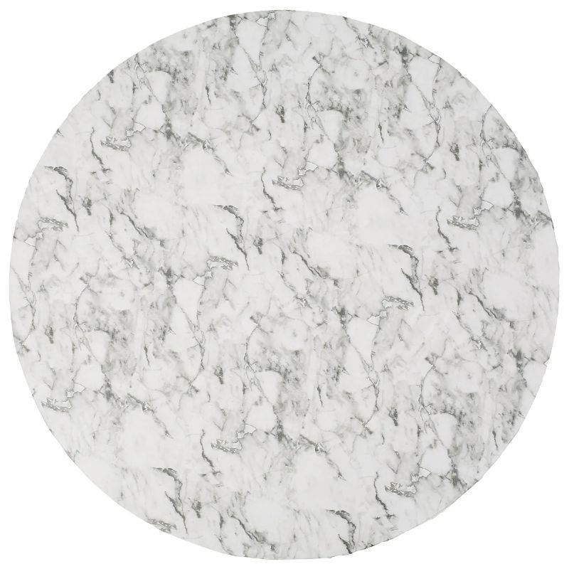 Denne runde PVC dug kan fungere som et beskyttende borddække ved daglig brug såvel som ved festlige lejligheder. Den vandafvisende og olieafvisende overflade er beregnet til almindelig borddækning i hjemmet. Den elastiske kant hjælper dugen med at forblive på plads under brug. Det hvide marmor mønster skaber et neutralt design, der kan kombineres med forskellige typer service og dekorationer.