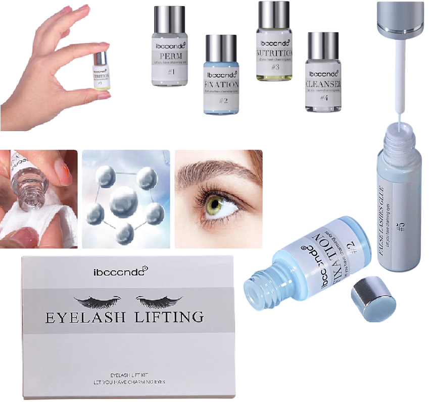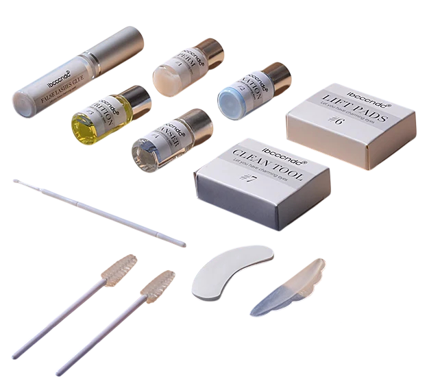 • Indholdet af pakken: lim, permanent creme, fikserende creme, rensende creme, nærende creme, 5× Y børste, 5 par silikone puder S–L, vatpinde, pads med børste