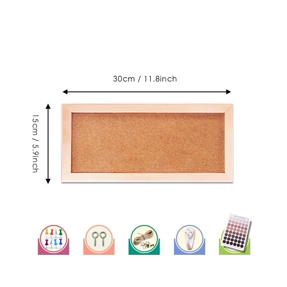 Kork opslagstavle med træramme 15 × 30 × 1,5 cm Fyrretræramme Naturlig korktavle til noter fotografier kontor hjem