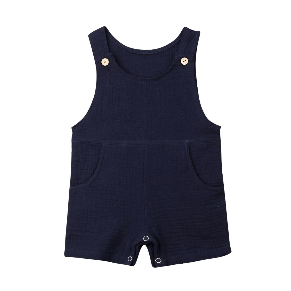 Sommeroveralls til babyer. Ærmeløs. Materialet er 100% bomuld.
