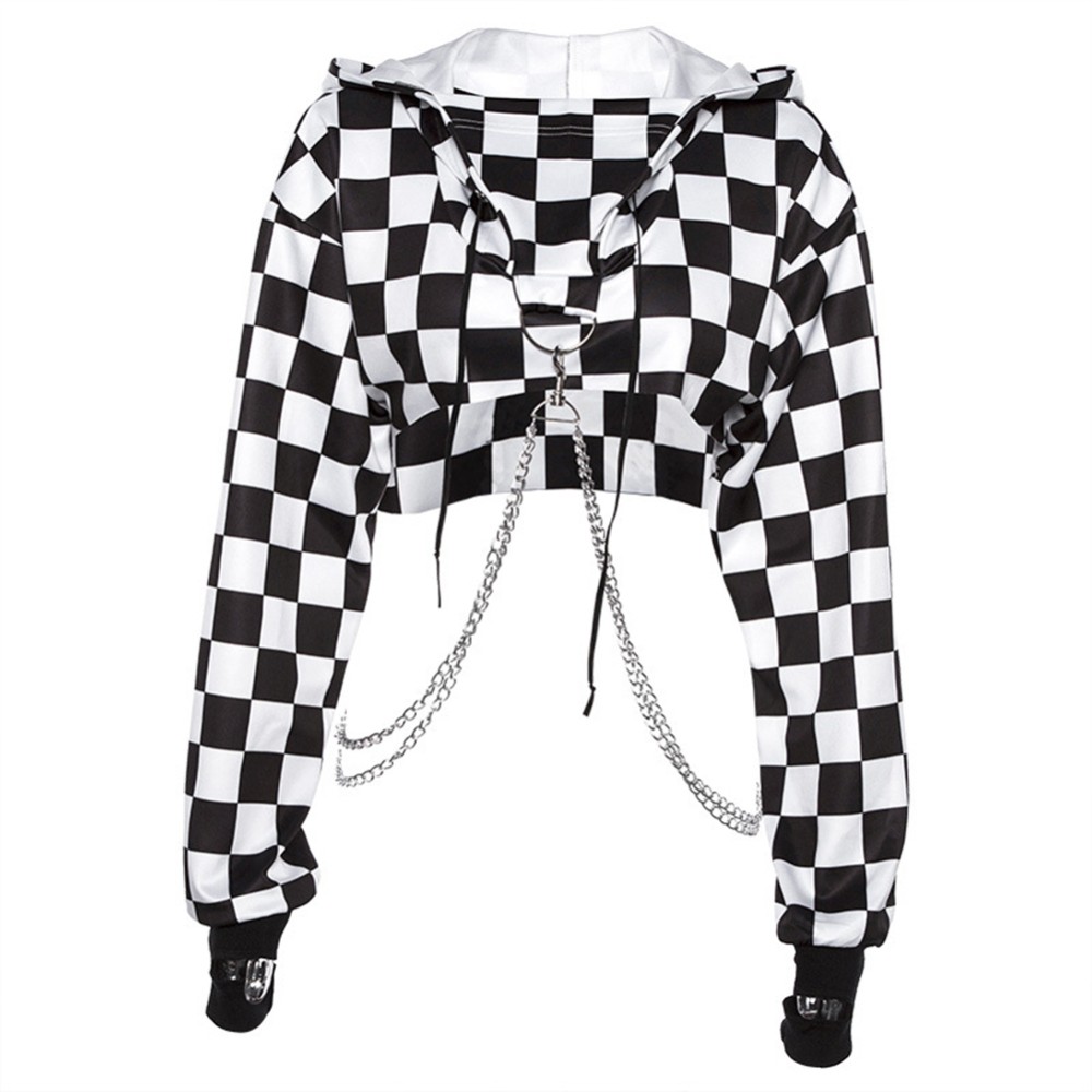 Forside Forside Tøj og tilbehør Dametøj Hættetrøjer til kvinder Kort sweatshirt i sort og hvid til kvinder