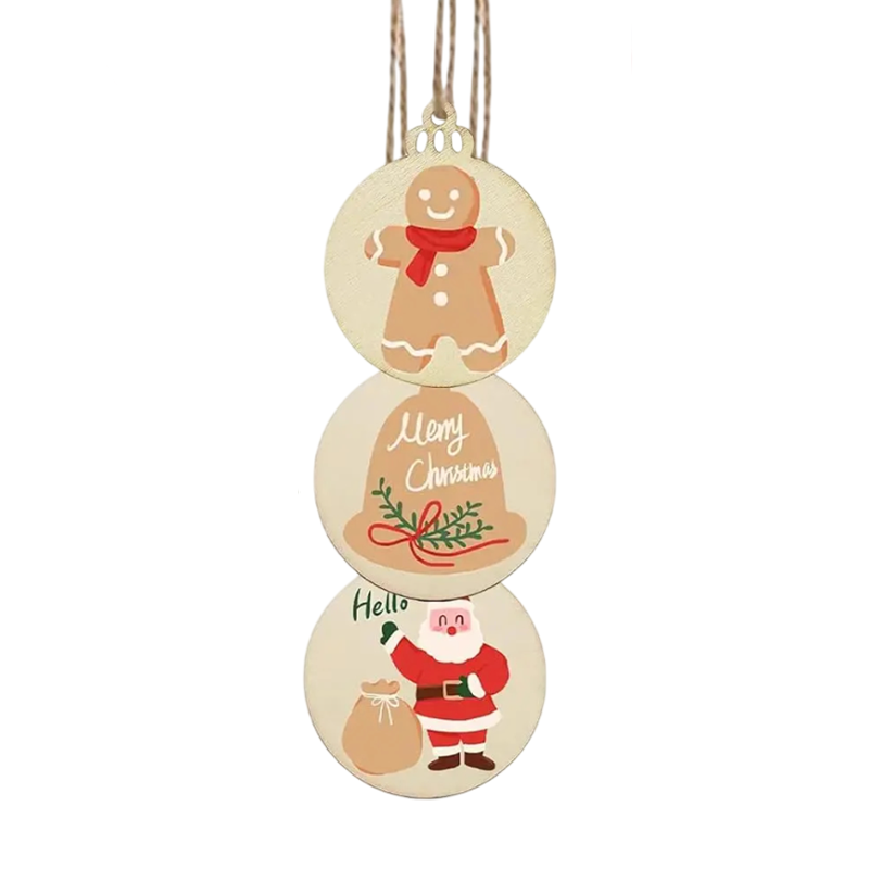 • Indholdet af pakken: 10 stk. træplader i form af julekugler og 10 stk. snore