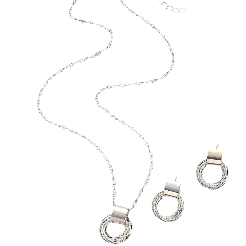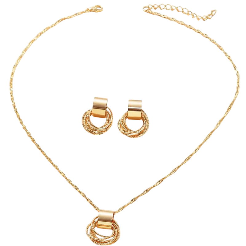 Dette elegante sæt øreringe og halskæde fremhæver et rent kredsløbsdesign, der symboliserer harmoni og tidløshed. Fine linjer og matchende udførelse skaber en afbalanceret helhed, der understreger kvindelighed og stil ved enhver lejlighed. Halskædet med en længde på 43+5 cm omfavner smukt halsudskæringen, mens øreringene på størrelse med 2.3 cm fremstår diskrete, men samtidig markante. Takket være den kvalitetsmæssige udførelse i kobber tilbyder sættet behagelig bæring og lethed hele dagen. Matchende kobber sæt smykker med kredsløbsdesign er det ideelle valg for kvinder, der søger elegante og tidløse accessories.