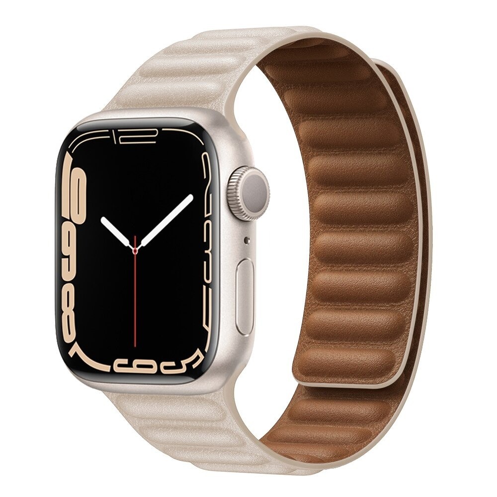Det perfekte tilbehør til Apple Watch! Sikrer sikker og behagelig brug. Denne rem er lavet af læder af høj kvalitet. Lukningen fungerer med en magnet. Velegnet til hverdagsbrug. Giv din stil et boost med denne læderrem til Apple Watch!