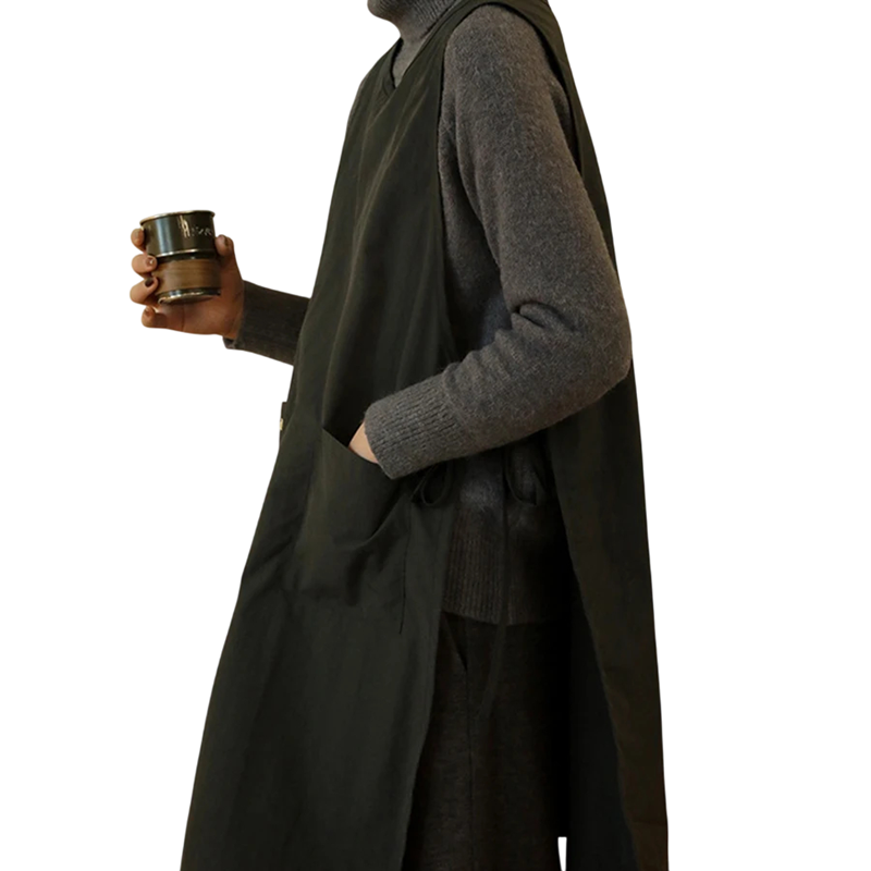 Lang dameforklæde 96x65 cm Vandtæt arbejdskøkkenforklæde med lommer til madlavning, maleri, kosmetik og negle