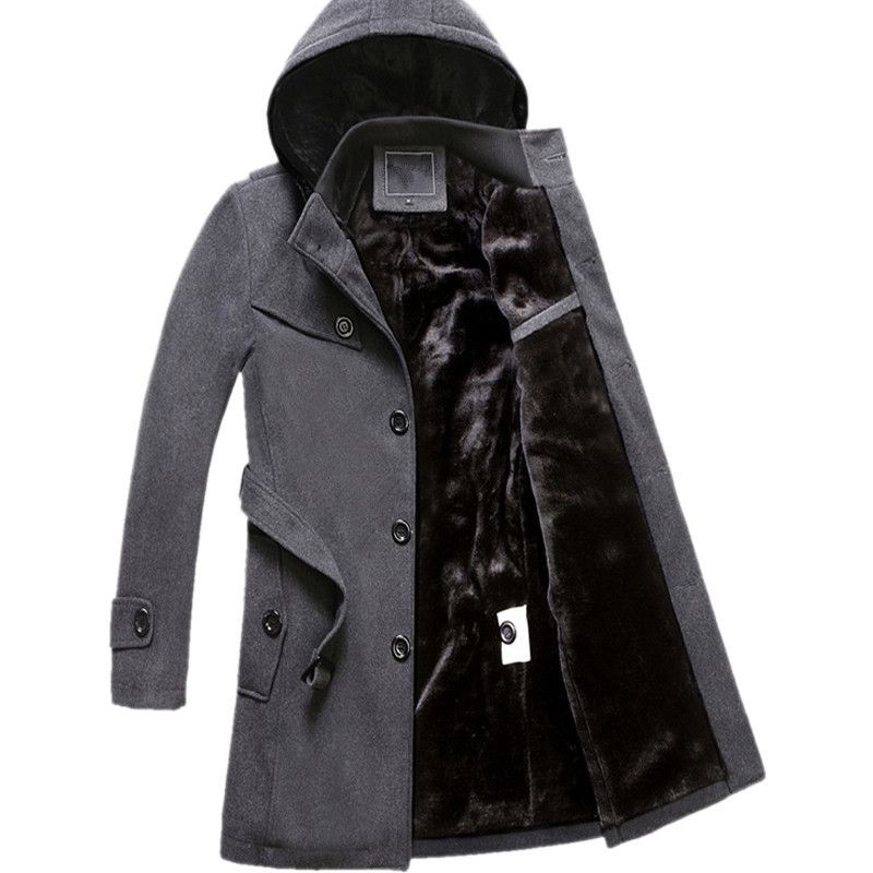 Denne herrefrakke med hætte og pelskant vil helt sikkert holde dig varm på kolde dage.