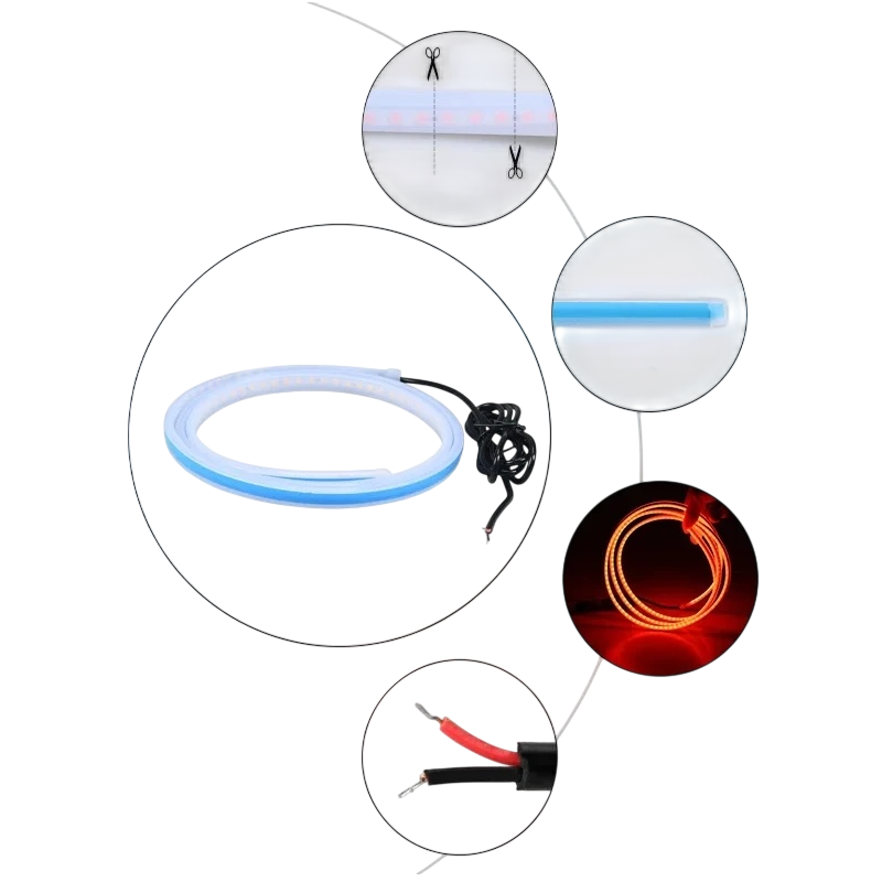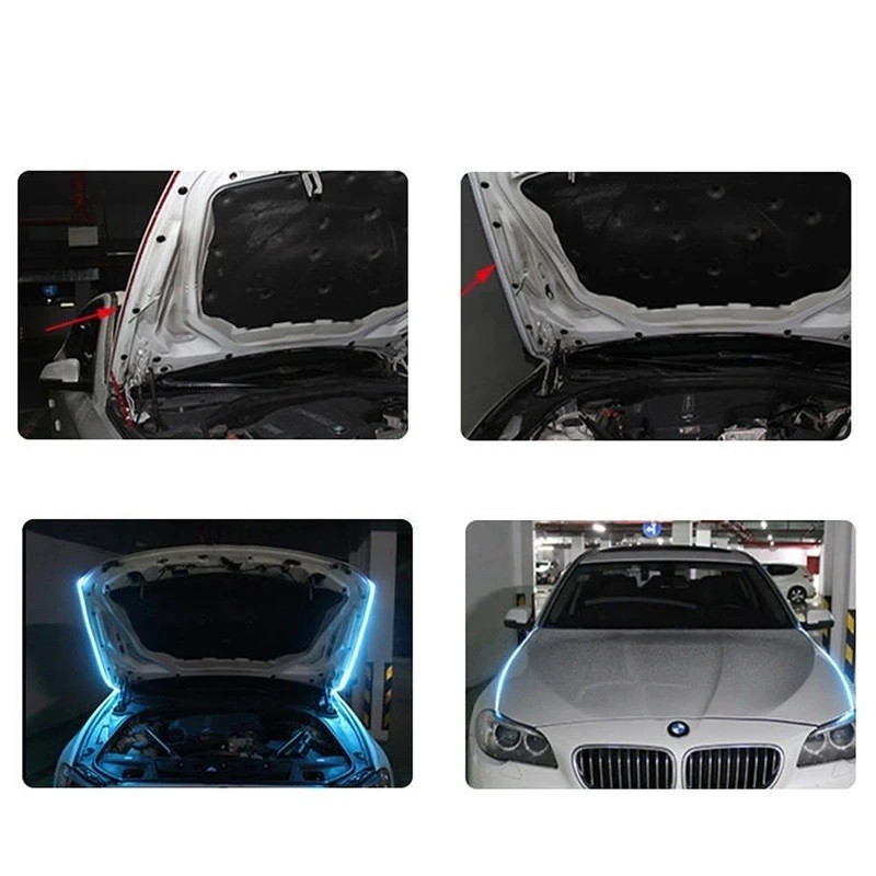 Holdbart 120 cm LED bånd til daglys og dekoration af motorhjelm, 12V, IP68, 3000 lm, forkortelig, vandtæt, nem installation med dobbeltklæbende tape og to tilslutningsmetoder. Fuld beskrivelse