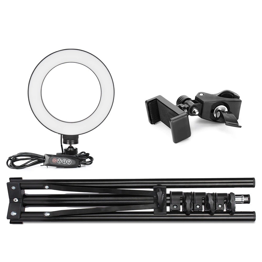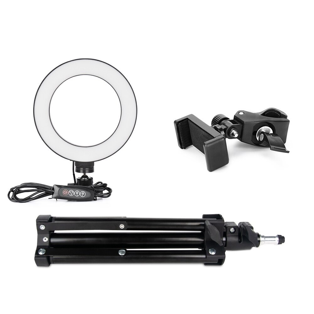 Forside Forside Foto, audio-video, gaming Fototilbehør LED-ringlys 16 cm med stativ K2433