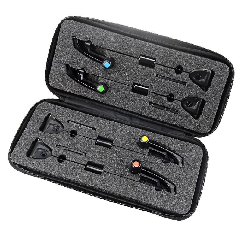 Sæt af LED-swingere 24,5 cm med farvekodning (rød, gul, blå, grøn) og 2,5 mm stik i et etui til fiskeri. Fuld beskrivelse