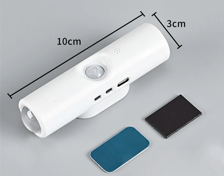 LED væglampe med bevægelsessensor, tre-farvet regulering til soveværelser og gange Denne moderne LED væglampe er den ideelle løsning til effektiv og stilfuld belysning af dine indendørs rum. Den er udstyret med en bevægelsessensor, der automatisk tænder lyset ved bevægelsesdetektion, hvilket sparer energi og sikrer komfort i soveværelser, gange eller skabe. Lampen tilbyder tre forskellige farvetilstande (varmt, neutralt og koldt lys), som nemt kan skiftes efter behov, hvilket giver dig mulighed for at tilpasse lyset til forskellige situationer og atmosfærer. Takket være de kompakte dimensioner (10 cm x 3 cm) er lampen også velegnet til mindre rum. Installation er nem og kræver ingen kompliceret elinstallation. Lampen drives via en USB-C port, hvilket sikrer hurtig og bekvem opladning, og dens magnetiske montering muliggør fleksibel placering.