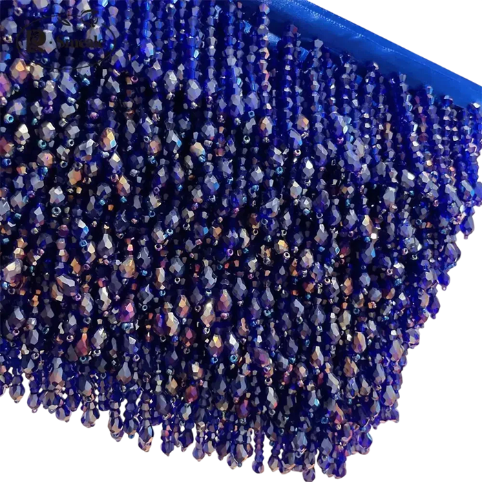 Lemmet dekorativ bånd med perlefringe er et iøjnefaldende tekstiltilbehør designet til pyntning af tøj, boligtekstiler og kreative projekter. Kombinationen af det lemmede bånd og de fine fringer med perler skaber et elegant dekorativt element, der kan fremhæve kanterne af stoffer eller give produkter et unikt udseende. Takket være det dekorative design er båndet velegnet til forskellige typer tekstilapplikationer.