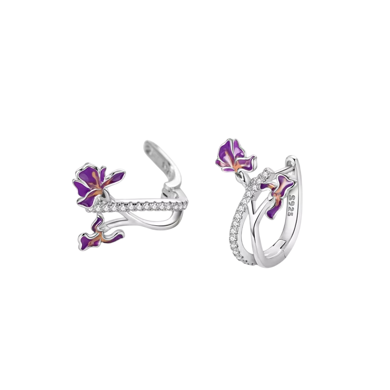 Ringørestikker med lilla iriser lavet af 925 sterling sølv er det ideelle modeaccessory til kvinder, velegnet til hverdag og særlige lejligheder. Fuld beskrivelse
