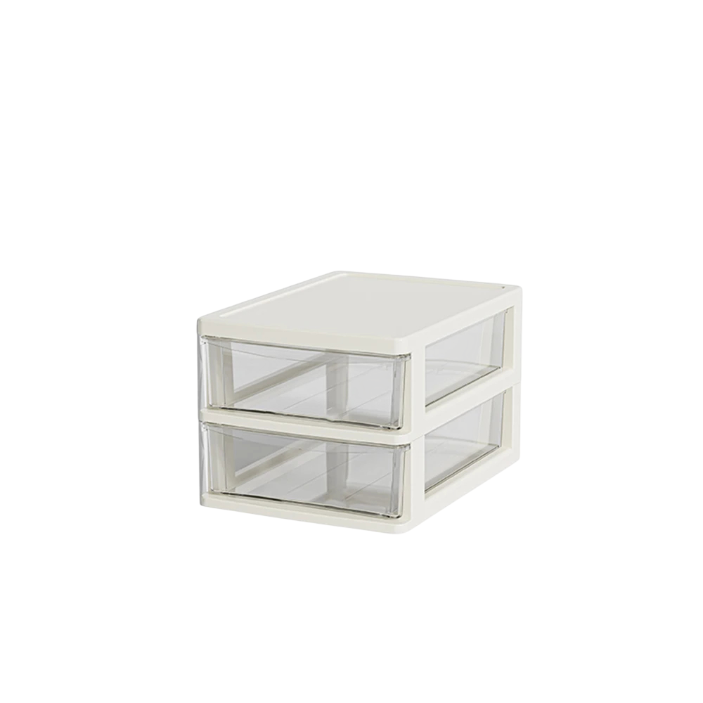 Forside Forside Hjem og husholdning Opbevaringsløsninger Opbevaringskasser Lille bordorganisator med 2 rum 15,5x21x13 cm PP plastikboks med skuffer til kontorartikler og småting