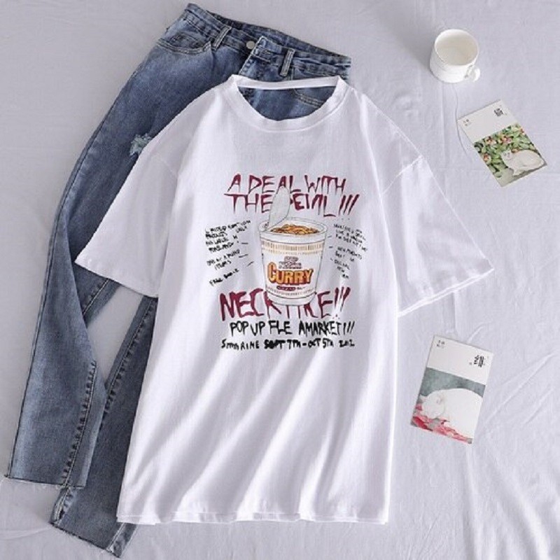 Løs T-shirt til kvinder med halsudskæring bagpå