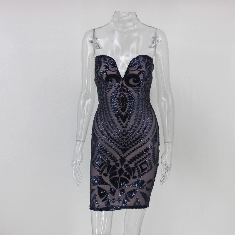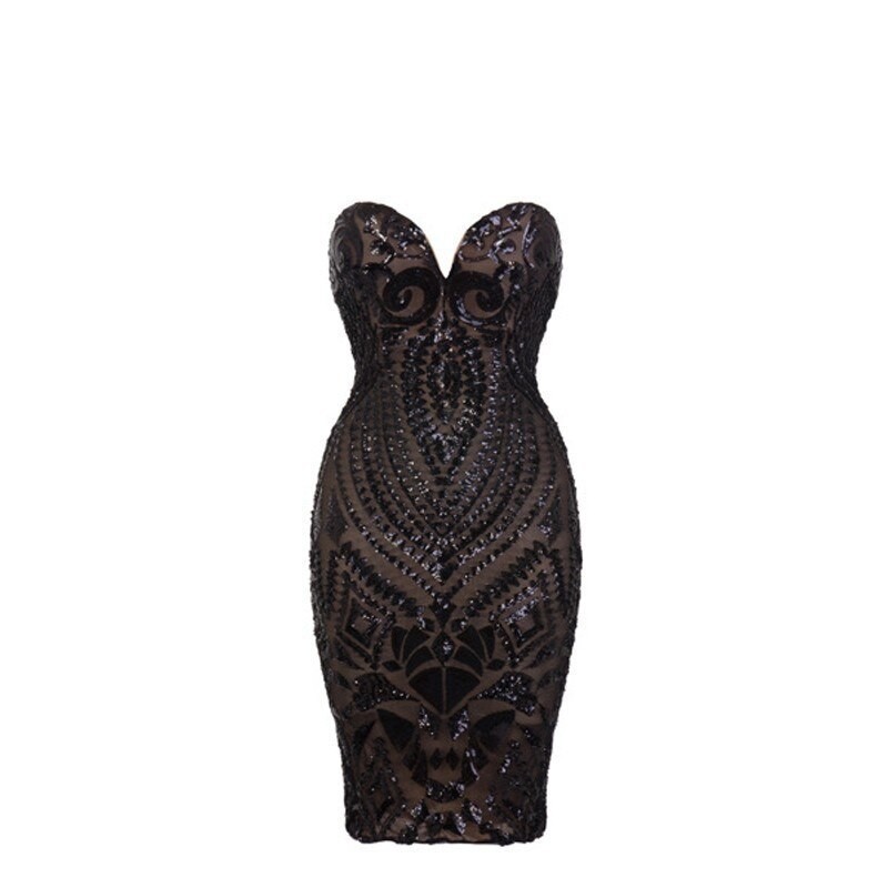 Luksuriøs minikjole med rund halsudskæring lavet af glitrende pailletter.