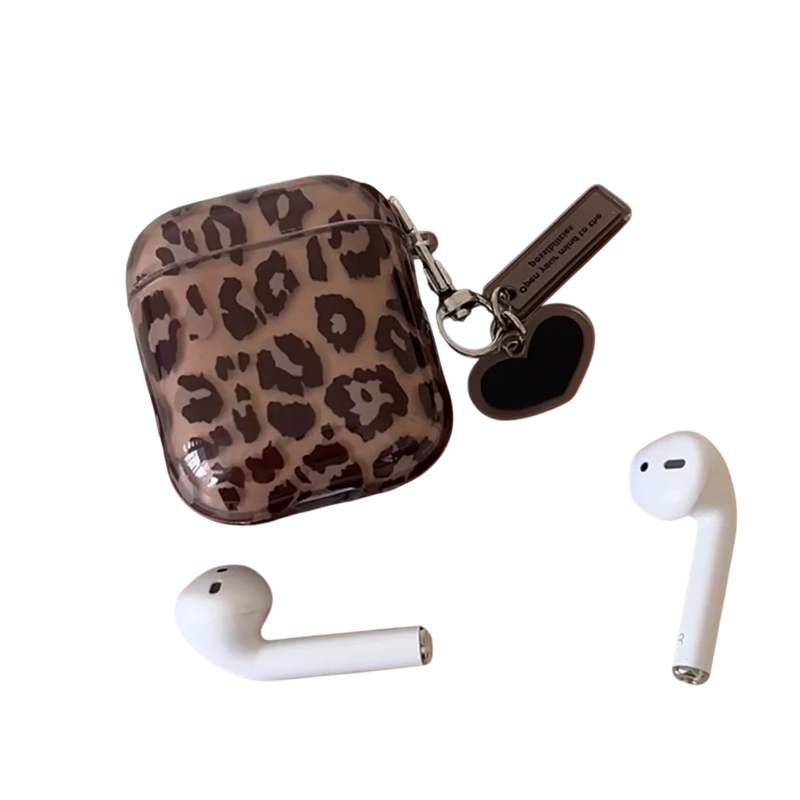 Luksuriøs silikoneetui til AirPods 1 og 2 med leopardmønster og hjertevedhæng Stilfuld beskyttelse til dine høretelefoner