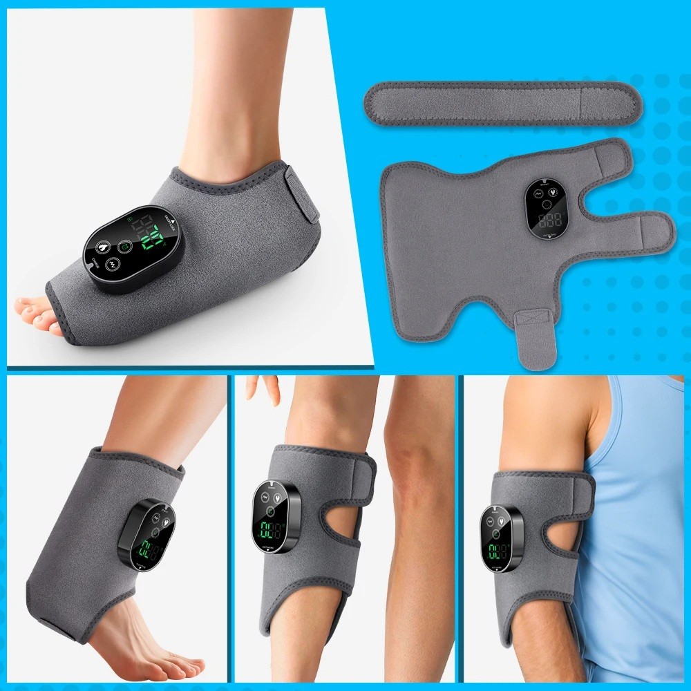 Denne multifunktionelle massagebandage er en praktisk hjælper for enhver, der ønsker at lindre ømme ben eller arme med behagelig varme og vibrationer. Takket være kombinationen af justerbare temperaturer, tre niveauer af massage, en smart timer og et kraftigt batteri kan den anvendes til afslapning derhjemme, på arbejdet og på rejser.