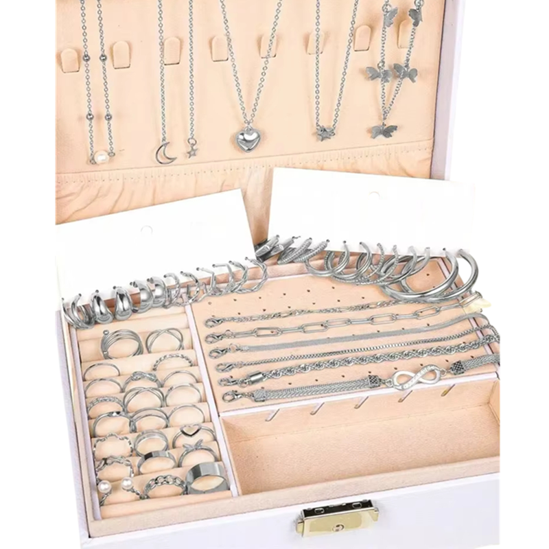 Mega smykkesæt 57 stk Øreringe Halskæder Armbånd Ringe Kombination Mode dame smykkesæt Gave til kvinder