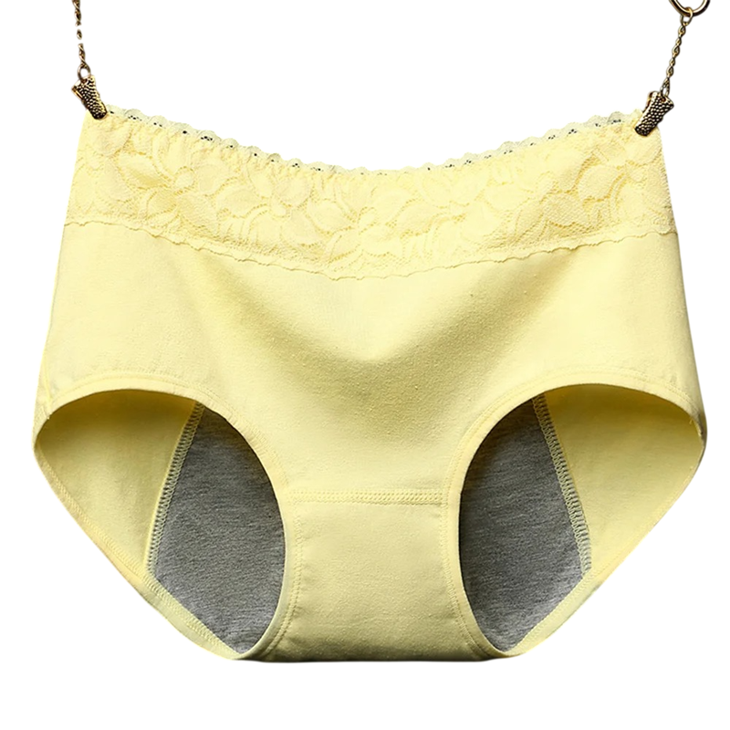 Forside Forside Sundhed og skønhed Hygiejneprodukter Intimhygiejne Menstruationstrusser Menstruationsbukser med høj talje Blonde i taljen Bomuld elastan Ensfarvet absorberende undertøj Genanvendelige komfortable bukser