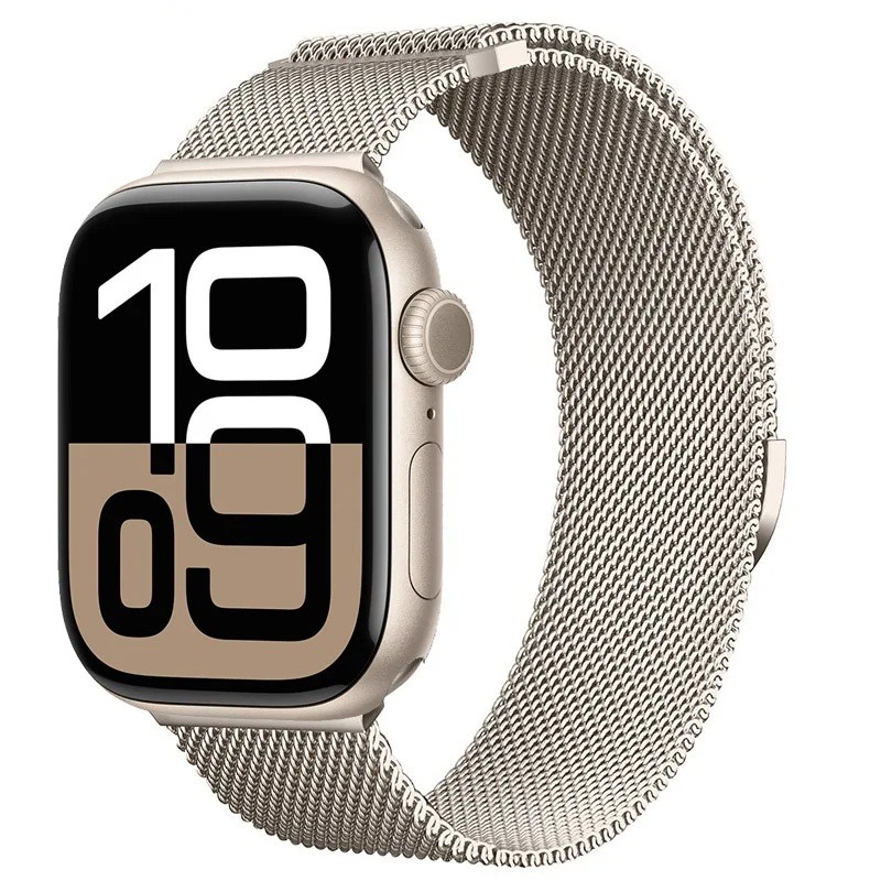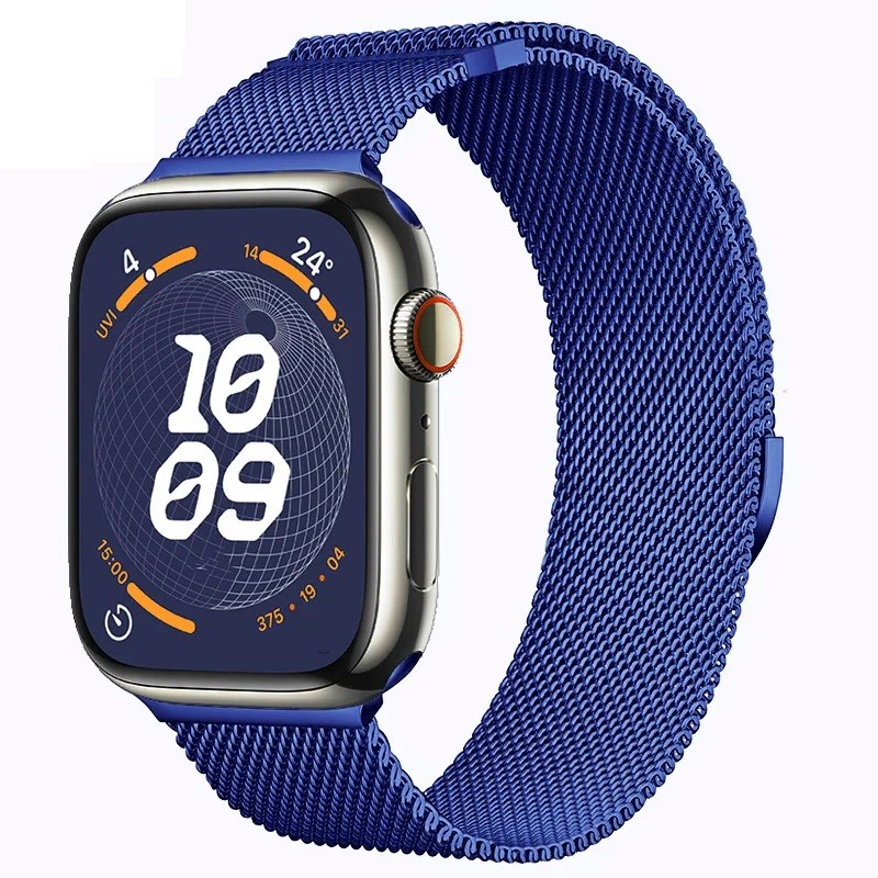 Metal milansk rem med magnetisk lukning og glidende længdejustering. Designet til Apple Watch 38–41 mm, kompatibel med serierne 1–9, SE og SE2, elegant og komfortabel. Fuld beskrivelse