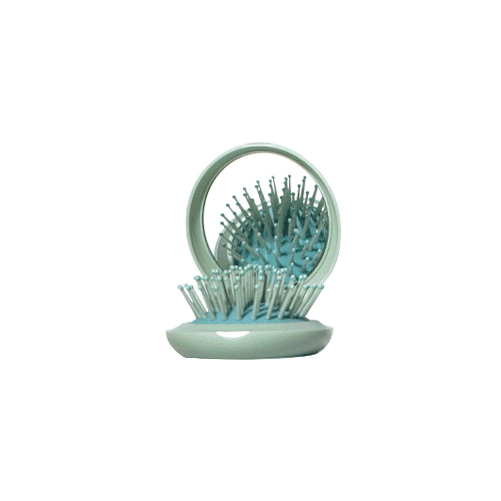 Mini foldbar kam med spejl Kompakt rejsemassagebørste med luftpude Runde tænder mod hårbrud