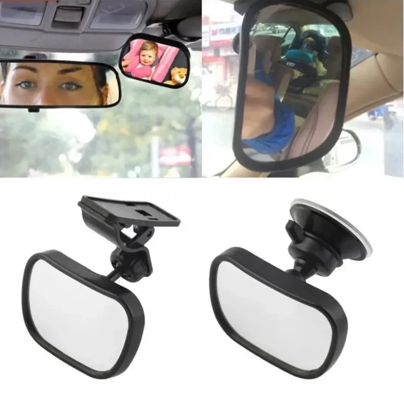 Mini justerbart bilspejl til overvågning af barn 8 x 5,5 cm med sugekop og klip Sikkerheds bilspejl til børn