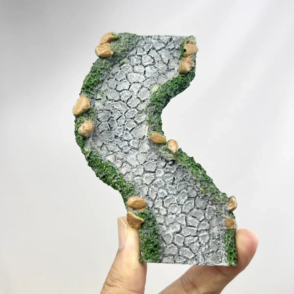 Forside Forside Alt til børn Skoleartikler Kunstnerartikler Miniaturned kamstensti 11 x 4,5 cm Bøjet havevej af harpiks Dekoration til minihaver og modelbygning