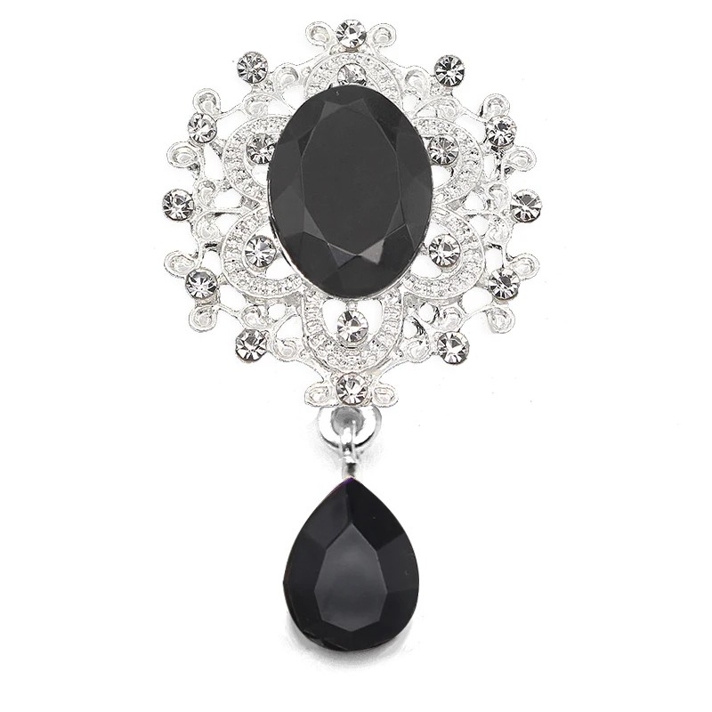 Moderne krystalbroche 4,5 x 2,5 cm Elegant tilbehør i zinklegering med akryl Flerfarvede sten Broche til frakke, kjole og blazer