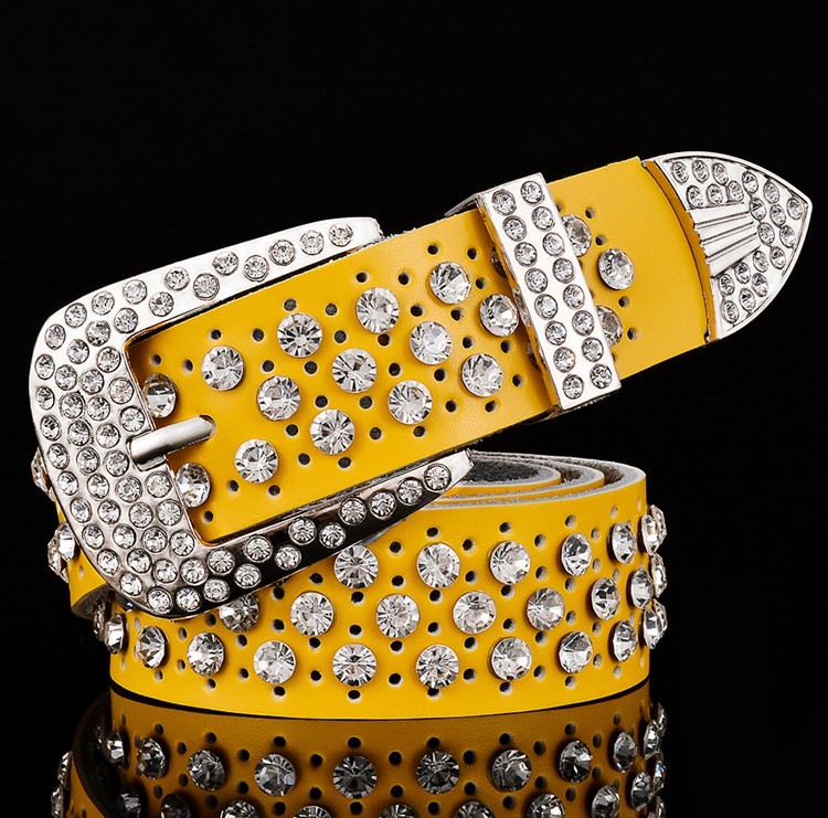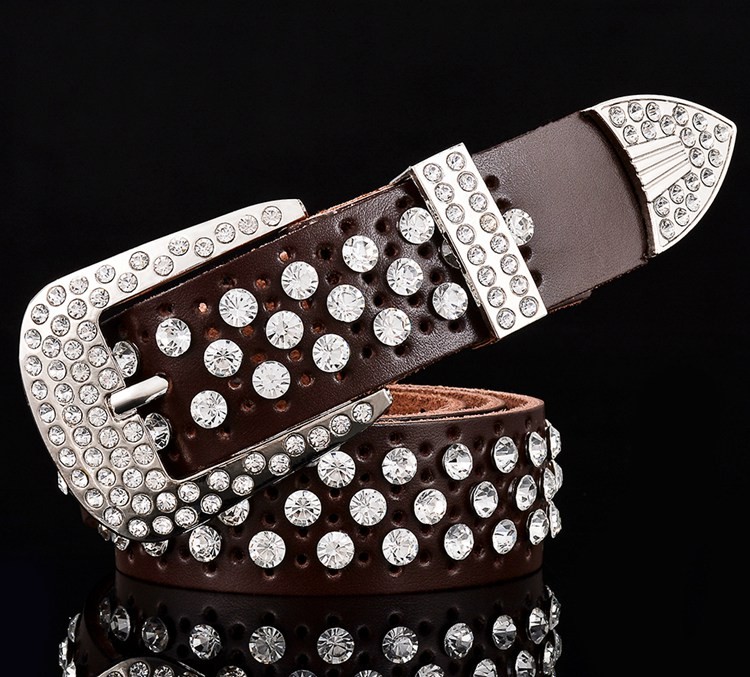 Et moderne læderbælte med luksuriøse rhinsten vil berige enhver kvindes garderobe.