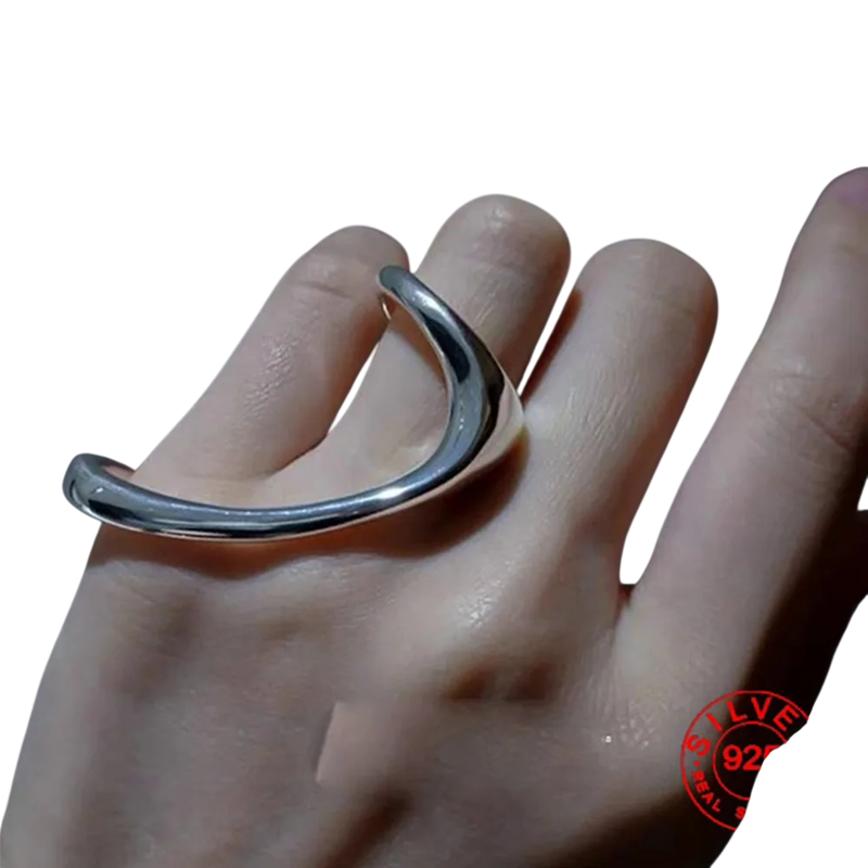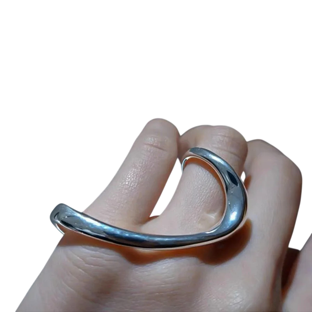 Stilfuldt modeaccessory med en original abstrakt form. Tilpasser sig komfortabelt til fingeren og supplerer perfekt både moderne og elegante outfits. Fuld beskrivelse