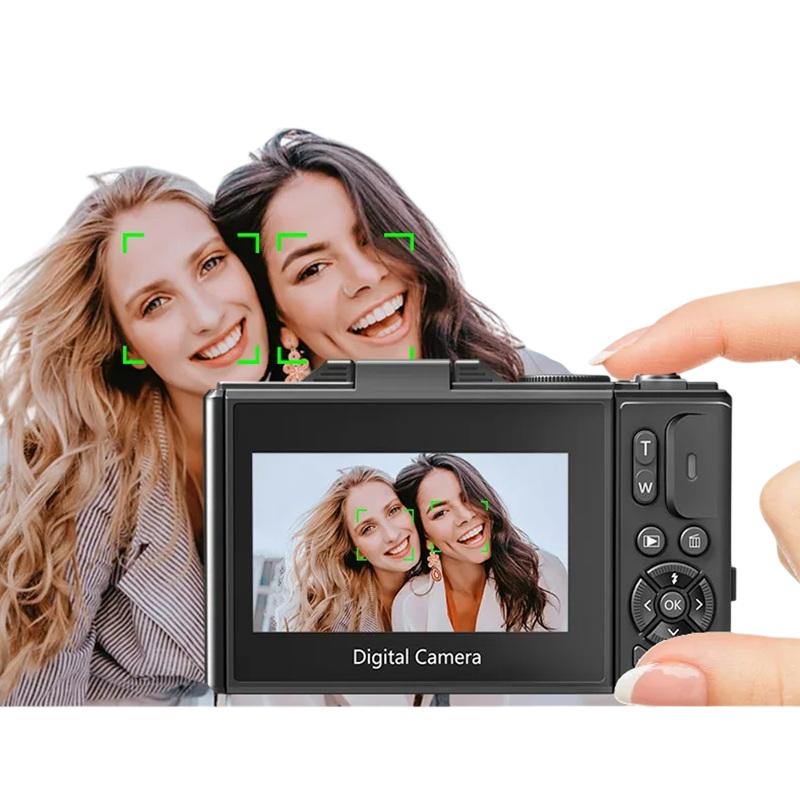 Forside Forside Foto, audio-video, gaming Digitalkameraer Multifunktionel kamera 64 MP 4K 4096 × 2160 18× zoom Vippeskærm 180° Webcam med WiFi Vlog sæt med 32GB SD kort