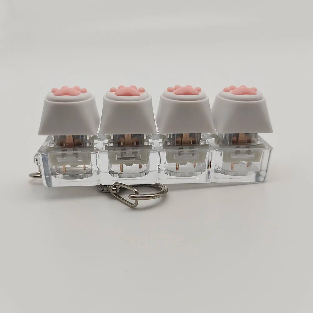 Dette søde antistress nøgleholder med fire kattepoter er ideelt til alle, der søger et originalt tilbehør og en afslapningshjælp i ét. Hver pote fungerer som en separat knap – ved tryk afgiver den en behagelig „kliklyd“ der minder om et tastatur. Fantastisk til afstressning, koncentration og afslapning.