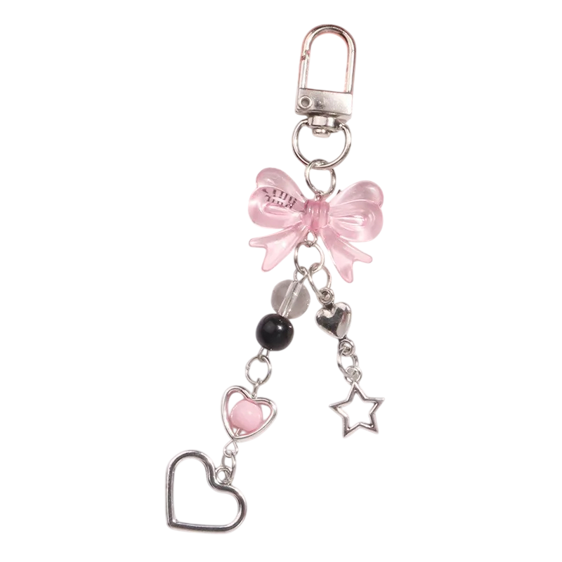 Nøglering 12 x 2 x 2 cm Sløjfe med hjerter Plastisk og harpiks dekoration til nøgler Taske Rygsæk Sødt tilbehør