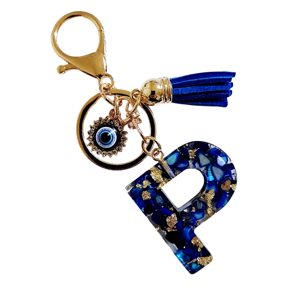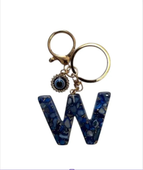 Nøglering 4 cm Harpiks nøglering Blå initialer og beskyttende øje Dekorativ pynt til taske rygsæk Gave til kvinder