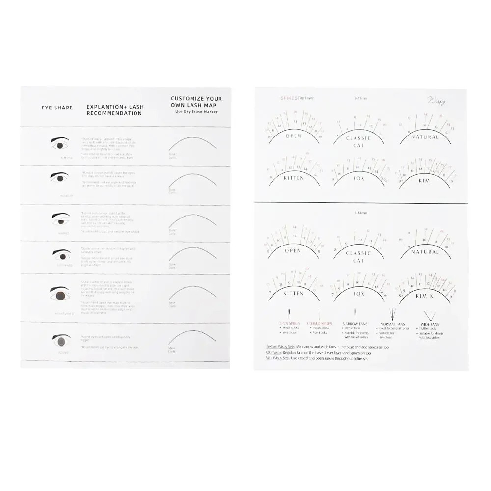 Træningsværktøj til begyndere med tynde vipper, ideelt til øvelse af kortlægning af længde, retning og tæthed ved forlængelse af vipper. Fuld beskrivelse