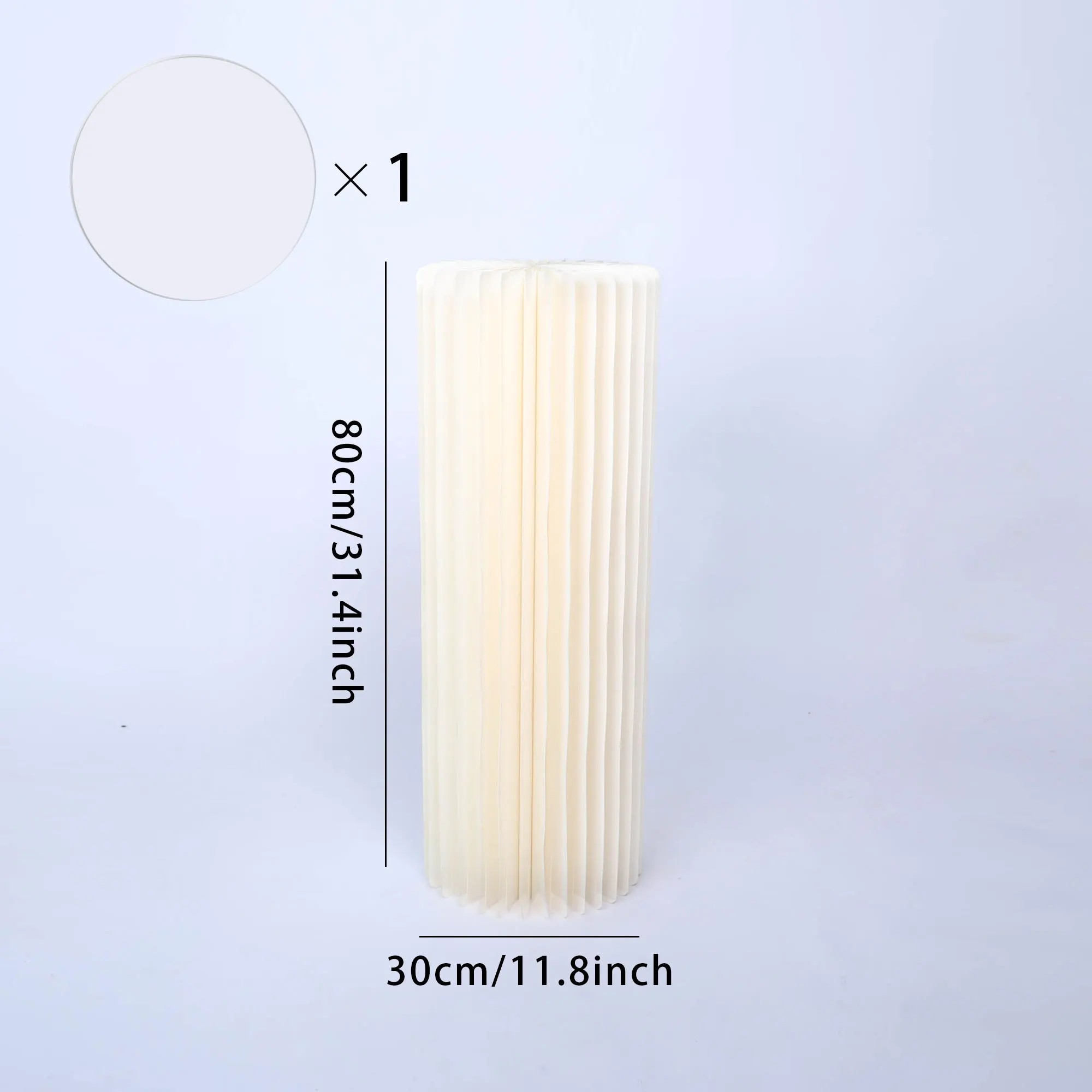 Ekstra høj papir cylindrisk kageholder er et iøjnefaldende dekorativt element, der straks tiltrækker opmærksomhed og giver festbordet et professionelt udseende. Takket være dimensionen 30 x 80 cm (diameter x højde) skaber den en dominerende højdeeffekt, ideel til kager, arrangementer, blomsterdekorationer eller temainstallationer. Den foldbare konstruktion muliggør nem montering uden brug af værktøj, og efter arrangementet kan den nemt foldes sammen til genbrug. Det elegante plisserede design fremstår moderne, rent og luksuriøst.