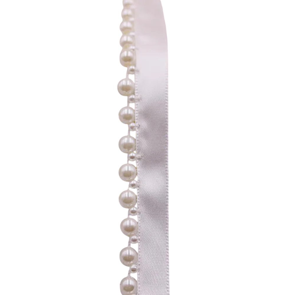 Perleblondebåndet repræsenterer en enkel måde at give dine projekter et elegant og stilfuldt udseende. Takket være det fine design med perledetaljer passer det perfekt til romantiske dekorationer såvel som moderne kreative projekter.