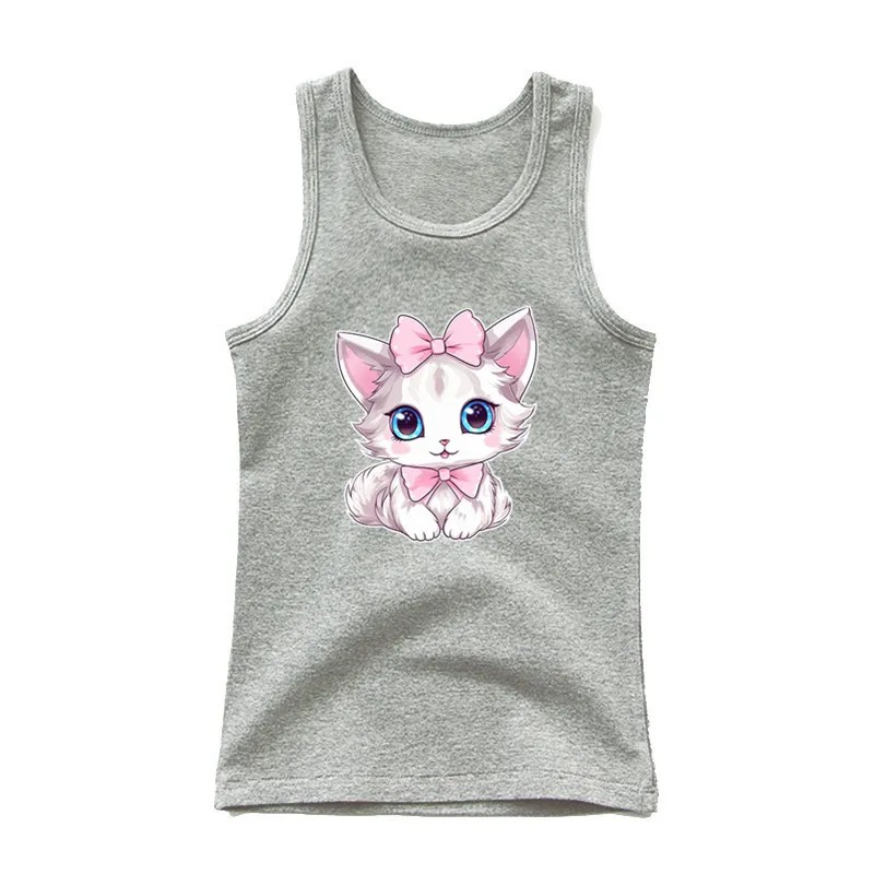Forside Forside Tøj og tilbehør Børnetøj Pigetøj Pigetoppe Pigernes sommer tanktop uden ærmer 100% bomuld Ensfarvet t-shirt med tegnet kat Sødt prinsessetop til børn Behageligt i forskellige farver