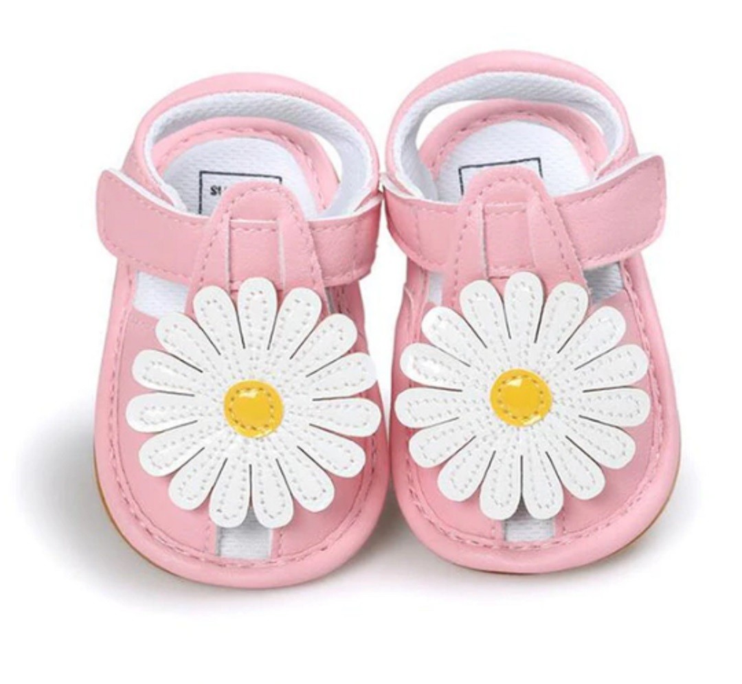 Du vil elske disse lædersandaler til piger dekoreret med en blomst!