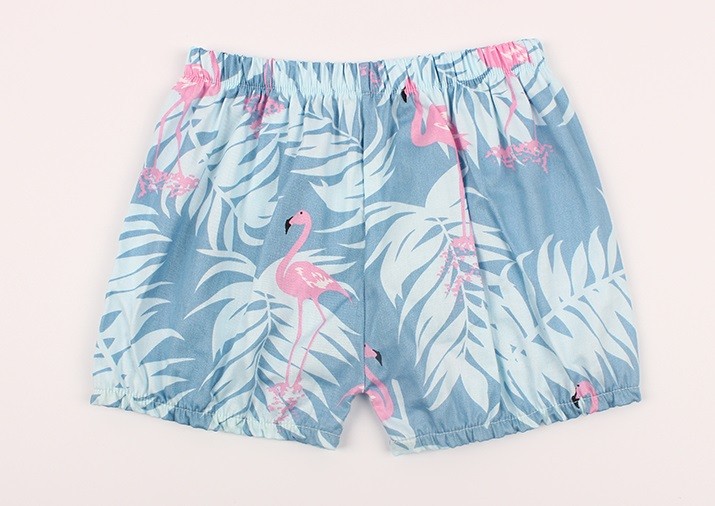 Klæd din lille pige i disse smukke shorts med et print af flamingoer og palmeblade.